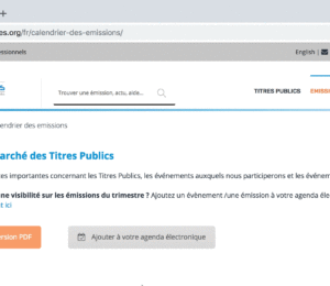 Les émissions sont désormais classées en trois rubriques : émissions à venir, émissions réalisées et émissions planifiées qui sont celles prévues par le calendrier mais dont les caractéristiques (avis d’appel d’offres) ne sont pas encore disponibles.
