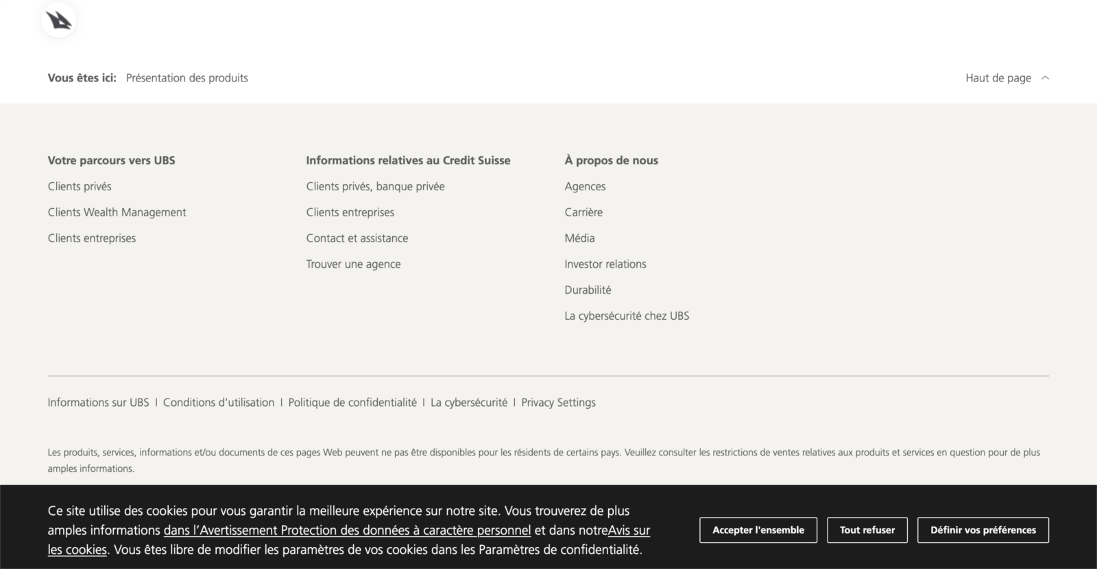 1. Bandeau cookie visible dès l’arrivée sur le site :