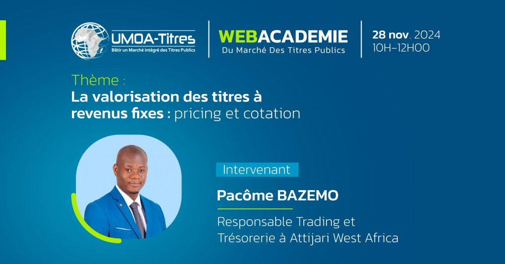 La Webacadémie du Marché des Titres Publics est une série de webinaires de formation organisée par UMOA-Titres, où les participant(e)s ont l’opportunité de renforcer leurs
